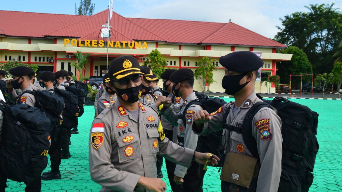 JALURNEWS.COM, Natuna – Kapolres Natuna AKBP Ike Krisnadian, S.IK, M.Si, memimpin Apel pelepasan Pasukan Dalam Rangka Backup Poltabes Barelang di Kabupaten Natuna, Provinsi Kepri, Senin (12/10/2020).