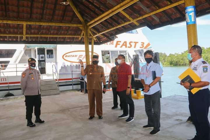 JALURNEWS.COM, Batam- Pejabat sementara (Pjs) Wali Kota Batam Syamsul Bahrum meninjau pelabuhan Nongsa Pura, Senin (19/10/2020). Peninjauan ini menindaklanjuti kunjungan Pjs Gubernur Kepri Bahtiar Baharuddin yang tertunda guna memastikan kesiapan akses exit entry point wisatawan di Batam.