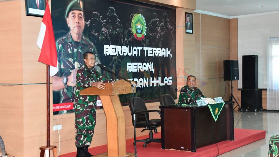 Dalam arahannya Kasdam mengingatkan kepada Prajurit jajaran Korem 033/WP agar melaksanakan program kerja disatuan masing-masing dengan tepat waktu, jangan bosan berlatih untuk menambah kemampuan dan kemahiran sehingga prajurit siap melaksanakan tugas.