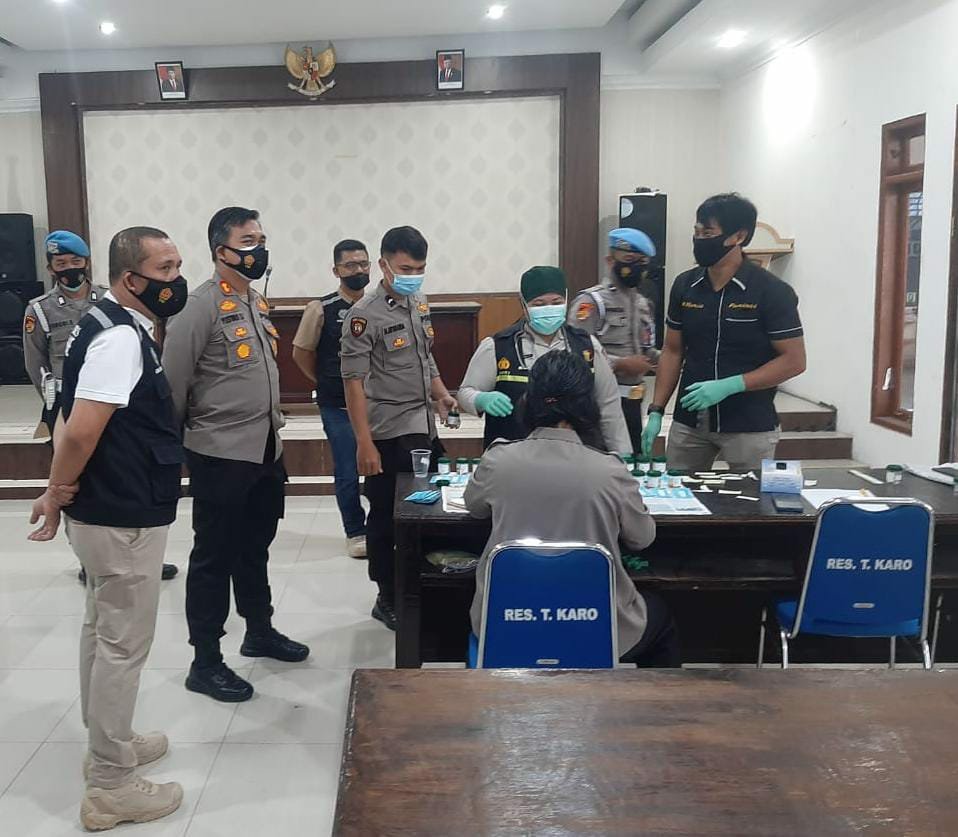 Kegiatan pemeriksaan test urine terhadap Perwira dan Brigadir serta Aparatur Sipil Negara ( ASN ) Polres Tanah Karo bertempat di Aula Pur Pur Sage Polres Tanah Karo, pada hari ini Rabu tanggal ( 24/02/2021 ) pukul 08:30 WIB, setelah pelaksanaan Apel Pagi Kapolres Tanah Karo AKBP Agustinus Setyo, S.H, S.I.K.
