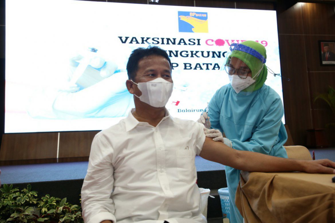 JALURNEWS.COM, Batam – Kepala Badan Pengusahaan (BP) Batam, Muhammad Rudi, telah divaksin dalam kegiatan Vaksinasi Covid-19 bagi pegawai di lingkungan BP Batam, yang dilaksanakan di Balairungsari lantai 3 BP Batam, Kamis (4/3/2021).