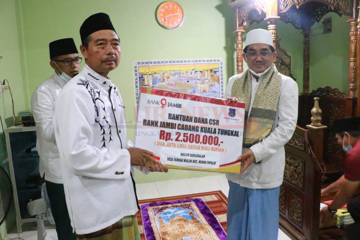“alhamdulillah pada malam hari ini kami pemerintah kab tanjab barat bersama forkopimda bersafari ramadhan di desa sungai muluk kec muara papalik, dan pada malam hari ini kita memberikan bantuan kpd guru guru ngaji, guru madrasah, majlis ta’lim, imam, khatib, bilal dan penjaga masjid/kaum masjid”. Ujar bupati