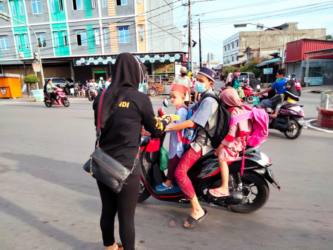 “Ketua Srikandi Unit Kerja (UK), Srikandi PP Sandra, beserta Ketua Srikandi PP Kabupaten Bintan melakukan kegiatan sosial membagikan Takjil terhadap penguna jasa jalan yang berada di Jalan Permaisuri, Kelurahan Tanjung Uban Kota, Kecamatan Bintan Utara, Kabupaten Bintan, Provinsi Kepri,” ujar Sandra.