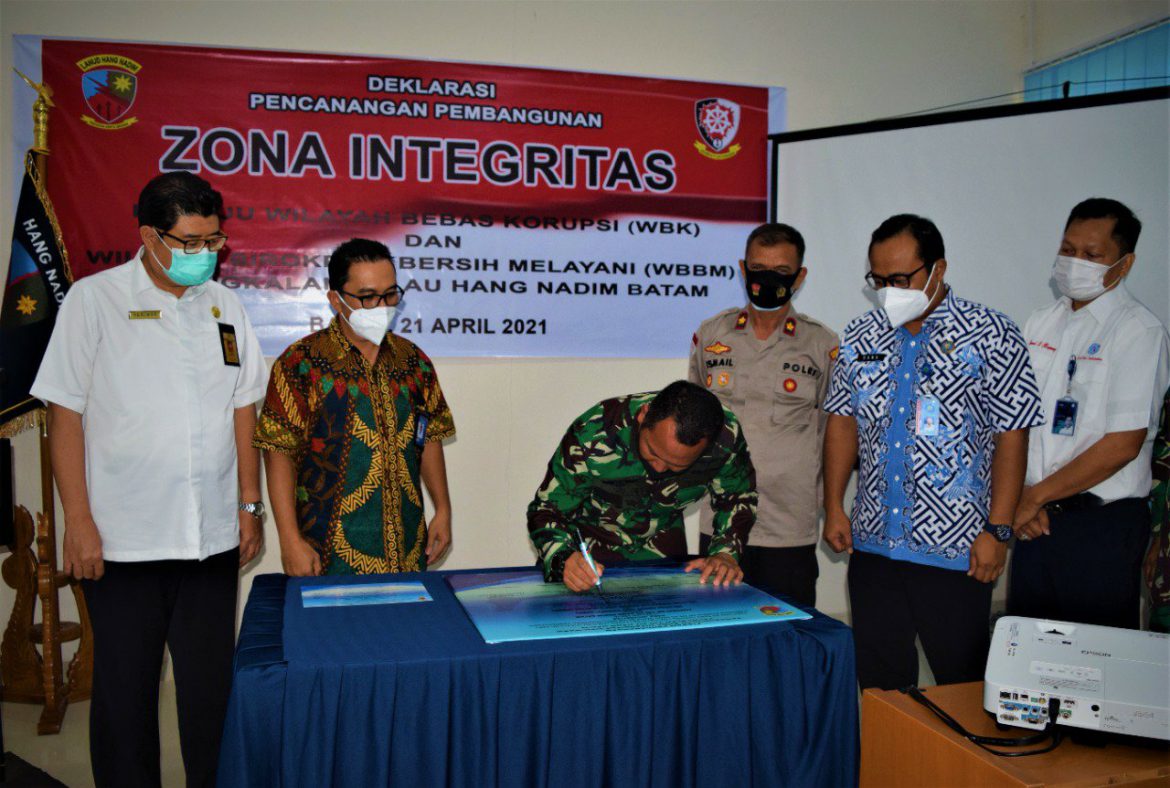 Pencanangan Zona Integritas WBK dan WBBM dipimpin langsung oleh Komandan Lanud Hang Nadim Letkol Pnb Iwan Setiawan. Dan dalam pencanangan Pembangunan Zona Integritas di Lanud Hang Nadim tersebut, dikuatkan dengan penandatanganan Piagam Pencanangan oleh sejumlah pejabat TNI-Polri dan Forkopimda Kota Batam.