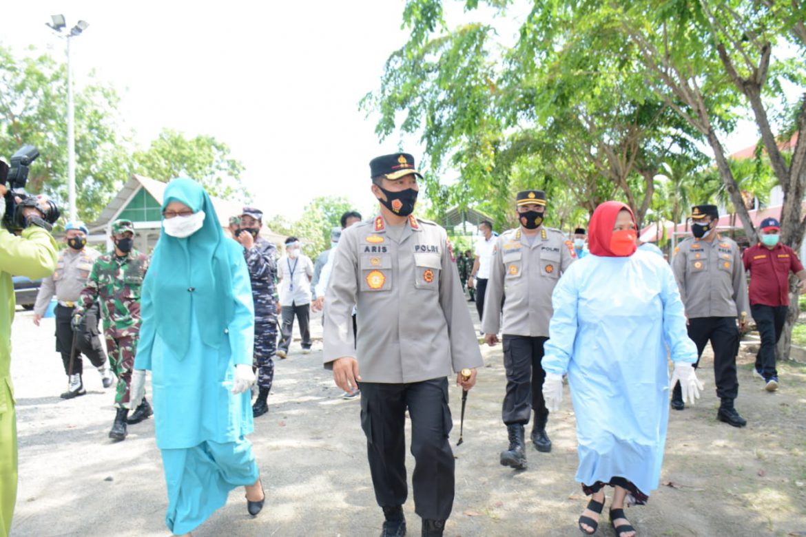 JALURNEWS.COM, Batam – Kapolda Kepri Irjen Pol Aris Budiman bersama Ketua DPRD Kepri, Jumaga Nadeak meninjau posko PPKM dan lokasi karantina di Asrama Haji, Batam Center, Jumat (28/5/2021).