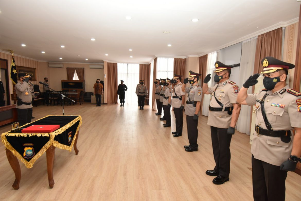 JALURNEWS.COM, BATAM – Kapolda Kepri, Irjen Pol Aris Budiman pimpin langsung serah terima jabatan (sertijab) Karo Ops, Dir Reskrimum, Dir Lantas dan Dir Sabhara Polda Kepri di ruang kerja Kapolda Kepri, Jumat (11/6/2021).