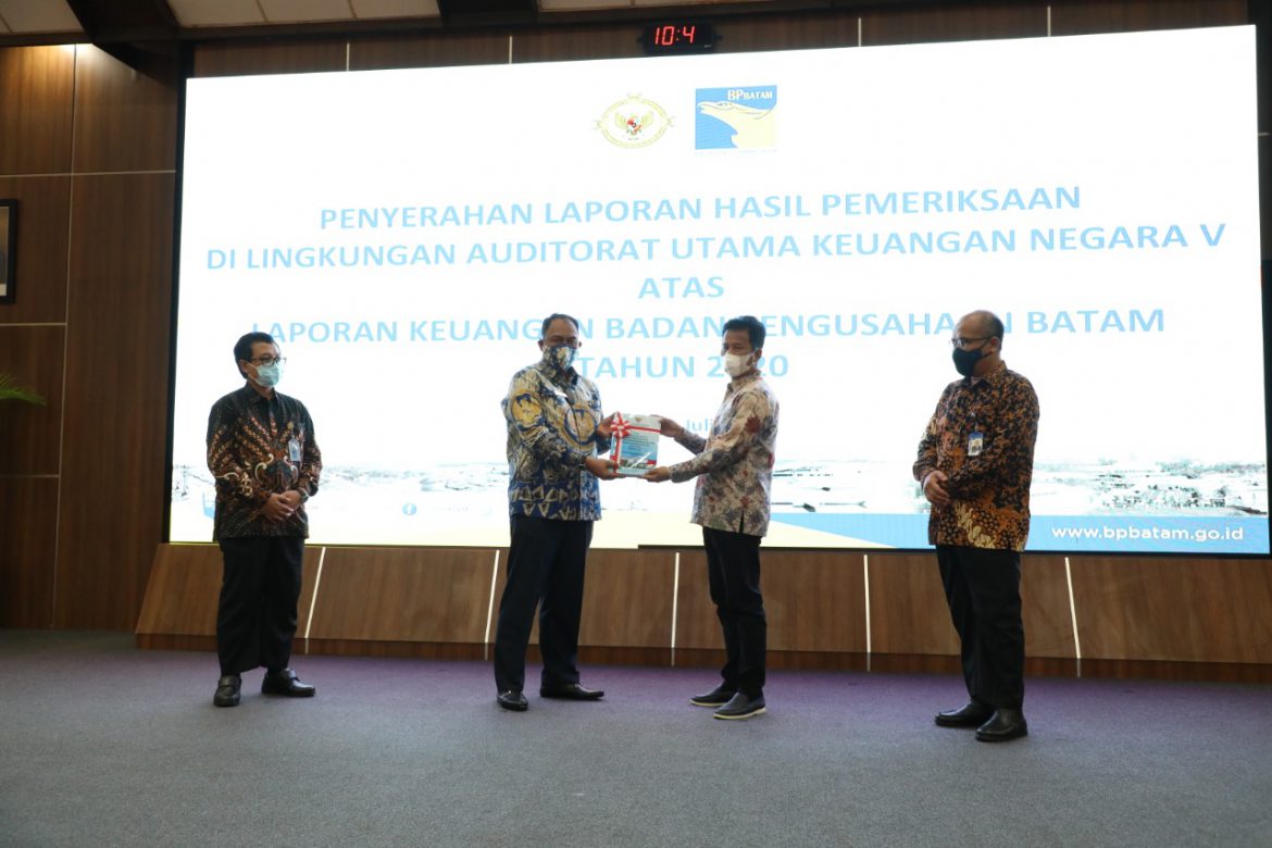 Kepala BP Batam, Muhammad Rudi, menerima langsung Opini WTP atas Laporan Keuangan Badan Pengusahaan Kawasan Perdagangan Bebas dan Pelabuhan Bebas Batam Tahun 2020.