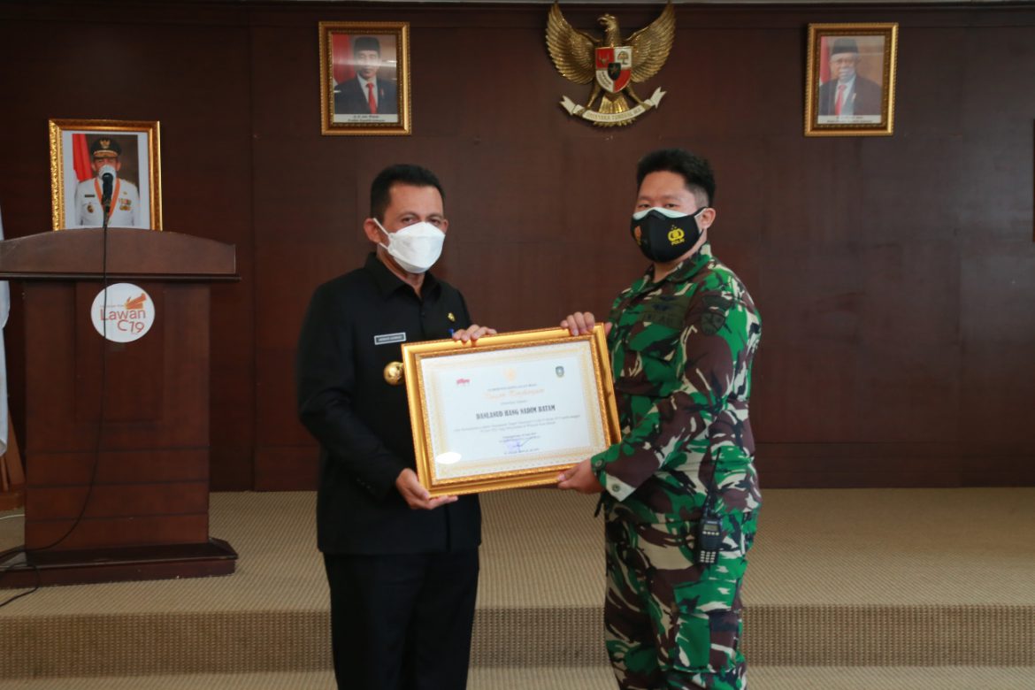 Hal itu sebagai bentuk penghargaan dari Gubernur atas partisipasi seluruh jajaran Lanud Hang Nadim yang telah berperan aktif dalam pelaksanaan kegiatan vaksinasi Covid-19 di wilayah Batam.