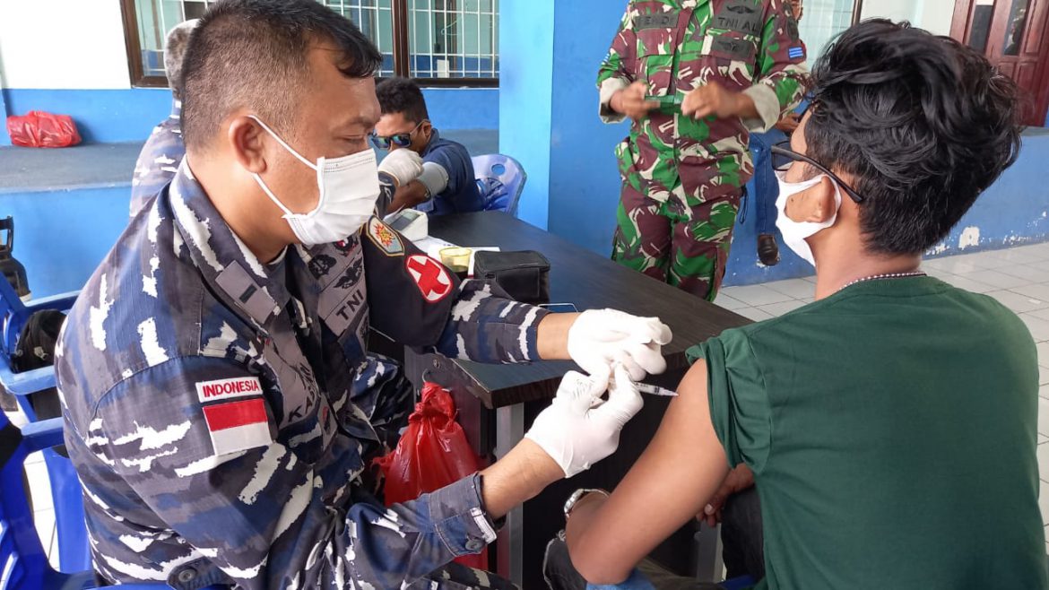 Untuk mendukung kegiatan tersebut melibatkan 15 tenaga vaksinator terdiri dari Lanal Ranai 4 orang, Kompi Komposit Marinir Setengar 4 orang dan dari Puskemas Pulau Tiga Barat 1 orang dokter dan 6 orang vaksinator.