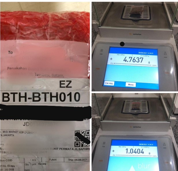 “Tanggal 07 Agustus 2021, sekira pukul 10.30 WIB, di Tempat Penimbunan Sementara (TPS) DNL, Tim K-9 bersama-sama dengan pegawai Perusahaan Jasa Titipan (PJT) memeriksa barang yang sebelumnya telah diatensi berdasarkan informasi dari masyarakat dan hasil analisa,” ungkap Kepala Seksi Layanan Informasi Bea Cukai Batam, Undani, Jumat (17/9/2021).