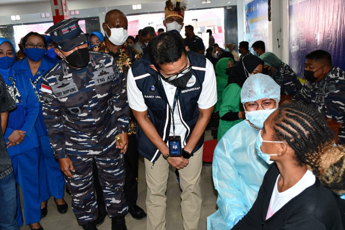 Dalam kesempatan tersebut, Menparekraf Sandiaga Uno mengucapkan terimakasih banyak terhadap Komandan Lantamal X yang telah mengkomando beberapa LSM dan badan usaha untuk membantu Pemerintah melaksanakan Serbuan Vaksinasi pada masyarakat Jayapura.