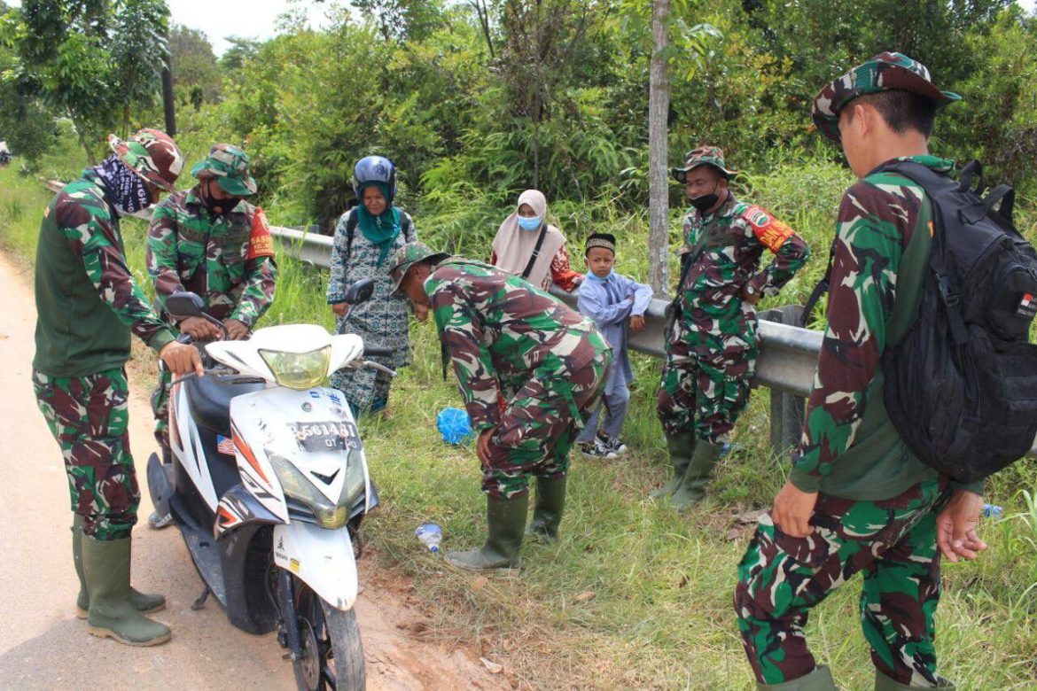 Anggota TNI yang sedang melaksanakan tugas dilokasi segera dengan spontan dan tulus membantu seorang ibu yang motornya mogok di jalan trans Barelang dekat sasaran TMMD ke 112.