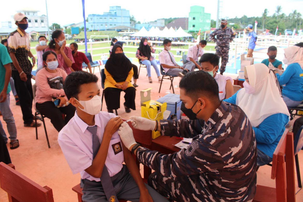 “Jadi dalam rangka Latihan Operasi Amfibi (Latopsfib) tahun 2021 yang tadi kita laksanakan di pantai Todak. Dan ini dilanjutkan dengan kegiatan serbuan vaksinansi Maritim bagi masyarakat Dabo Singkep yang kita gelar di Lapangan Merdeka,” kata Kasal”.