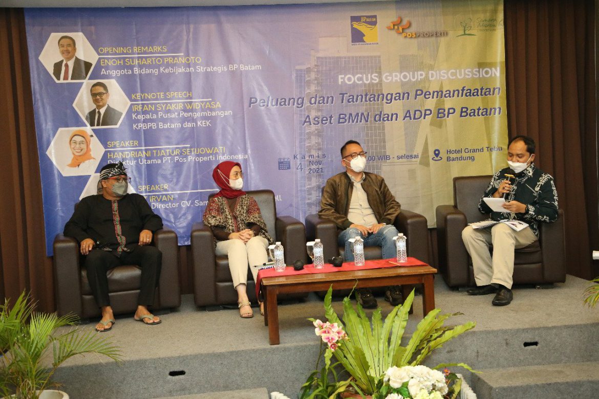 JALURNEWS.COM, BATAM – Dalam rangka pemanfaatan dan optimalisasi potensi aset, Badan Pengusahaan Batam (BP Batam) melalui Pusat Pengembangan KPBPBB dan KEK BP Batam menggelar Focus Group Discussion bertajuk “Peluang dan Tantangan Pemanfaatan Aset BMN dan ADP BP Batam”, Kamis (4/11/2021), bertempat di Meeting Room Grand Tebu, Bandung, Jawa Barat.