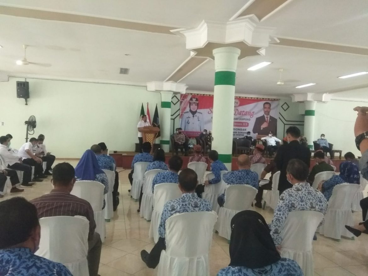 JALURNEWS.COM, TULANG BAWANG – Wakil Bupati Tulang Bawang Hendriwansyah dengan kepiawaiannya sambut hangat kedatangan Kepala BNN Brigjen Pol.Drs.Edi Swasono, MM, dan jajarannya yang berkunjung ke Tulang Bawang dalam rangka Sosialisasi Pencegahan dan Pemberantasan Peredaran Penyalahgunaan Narkotika (P4GN). Acara tersebut di helat di aula Masjid Baiturahman Islamic Centre Menggala. Rabu, (17/11/2021).