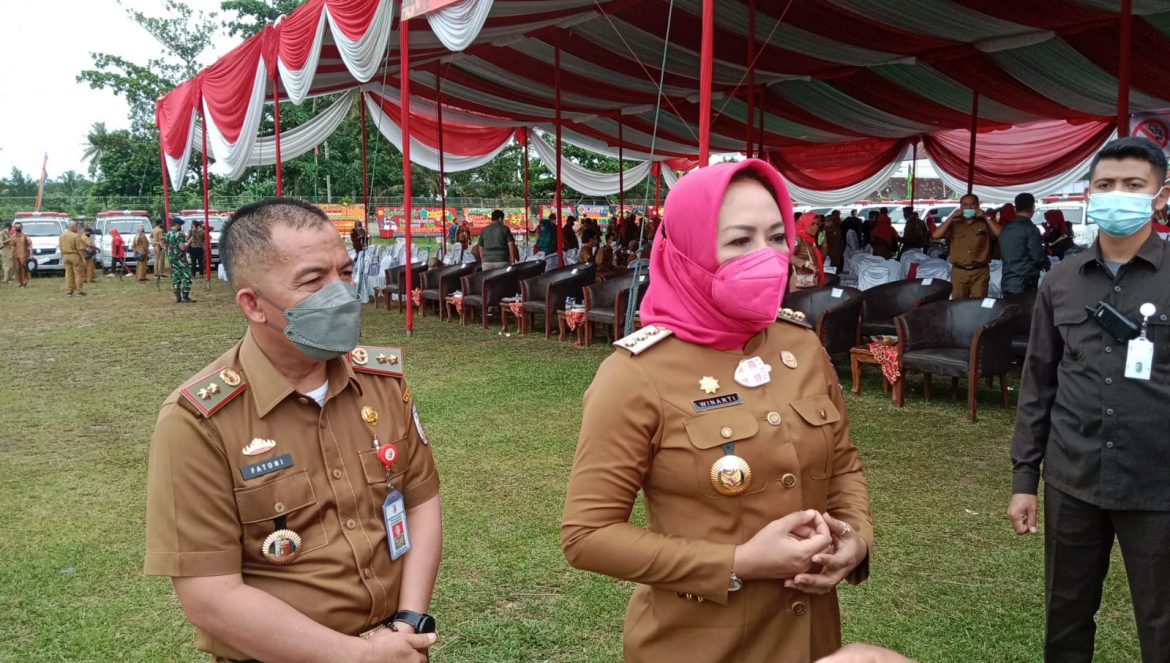 Puncak Peringatan Hari Kesehatan Nasional (HKN) tersebut diselenggarakan di lapangan Kampung Tri Tunggal Jaya unit 3 Kecamatan Banjar Agung, Tulang Bawang, Selasa, (07/12/2021).