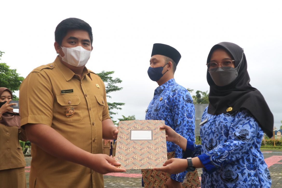 JALURNEWS.COM, BINTAN – Plt Bupati Bintan, Roby Kurniawan memimpin Apel Perdana disejalankan dengan Acara Pengangkatan dan Pengambilan Sumpah 140 PNS formasi Tahun 2019 serta penganugerahan Tanda Kehormatan Satyalancana Karya Satya kepada 324 PNS dilingkungan Pemkab Bintan di Lapangan Aula Kantor Bupati Bintan, Senin (3/1/2022) pagi.