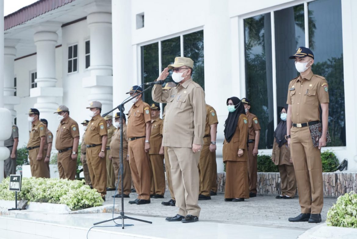 JALURNEWS.COM, ASAHAN – Pemerintah Kabupaten Asahan menggelar Apel Gabungan di Lingkungan Pemerintah mengawali awal tahun 2022.Apel yang berlangsung di Halaman Kantor Bupati Asahan tersebut di pimpin Sekretaris Daerah Kabupaten Asahan Drs. John Hardi Nasution, M. Si dan dikuti seluruh OPD dan ASN di Lingkungan Pemerintah Kabupaten Asahan, Senin (03/01/2022).