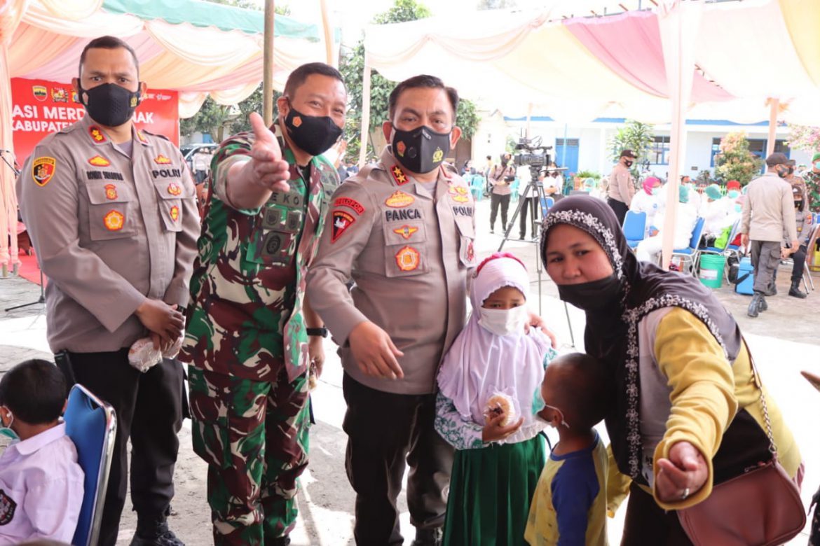 Percepatan Vaksinasi terhadap anak harus dilaksanakan untuk melindungi anak – anak kita dari pandemi, kepada Jajaran Kabupaten Karo tetap semangat dan ikhlas dalam tugas untuk kepentingan bersama hingga anak umur 6-11 tahun dapat tervaksin dalam jangka paling lambat dua bulan seperti yang kita sampaikan kepada Bapak Kapolri tadi, tutup Kapolda.