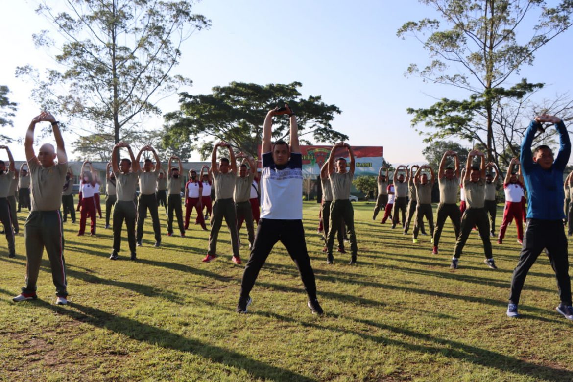 JALURNEWS.COM, Kabanjahe – TNI, POLRI Sabtu (15/01/2022) pagi melakukan senam bersama di Lapangan Batalyon125/Simbisa . Ratusan orang dari kedua unsur tersebut tampak antusias untuk senam bersama sejak pukul 08.30WIB pagi. Kegiatan yang dilaksanakan dalam rangka memantapkan sinergitas TNI, Polri untuk mewujudkan stabilitas Kamtibmas di Kabupaten Karo beserta seluruh jajarannya.