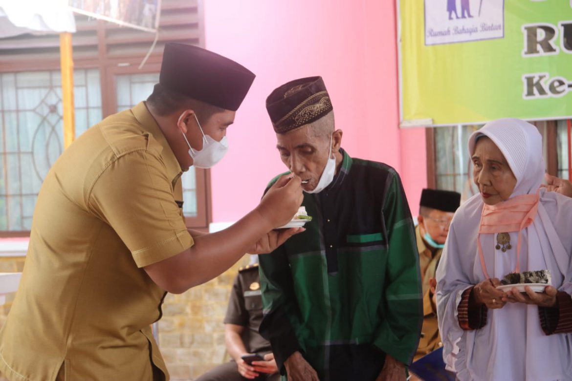 Turut hadir Ketua PKK yang juga Pembina Rumah Bahagia Bintan Hj. Dewi Kumalasari, syukuran kali ini mengusung tema kebahagiaan bagi para lansia.