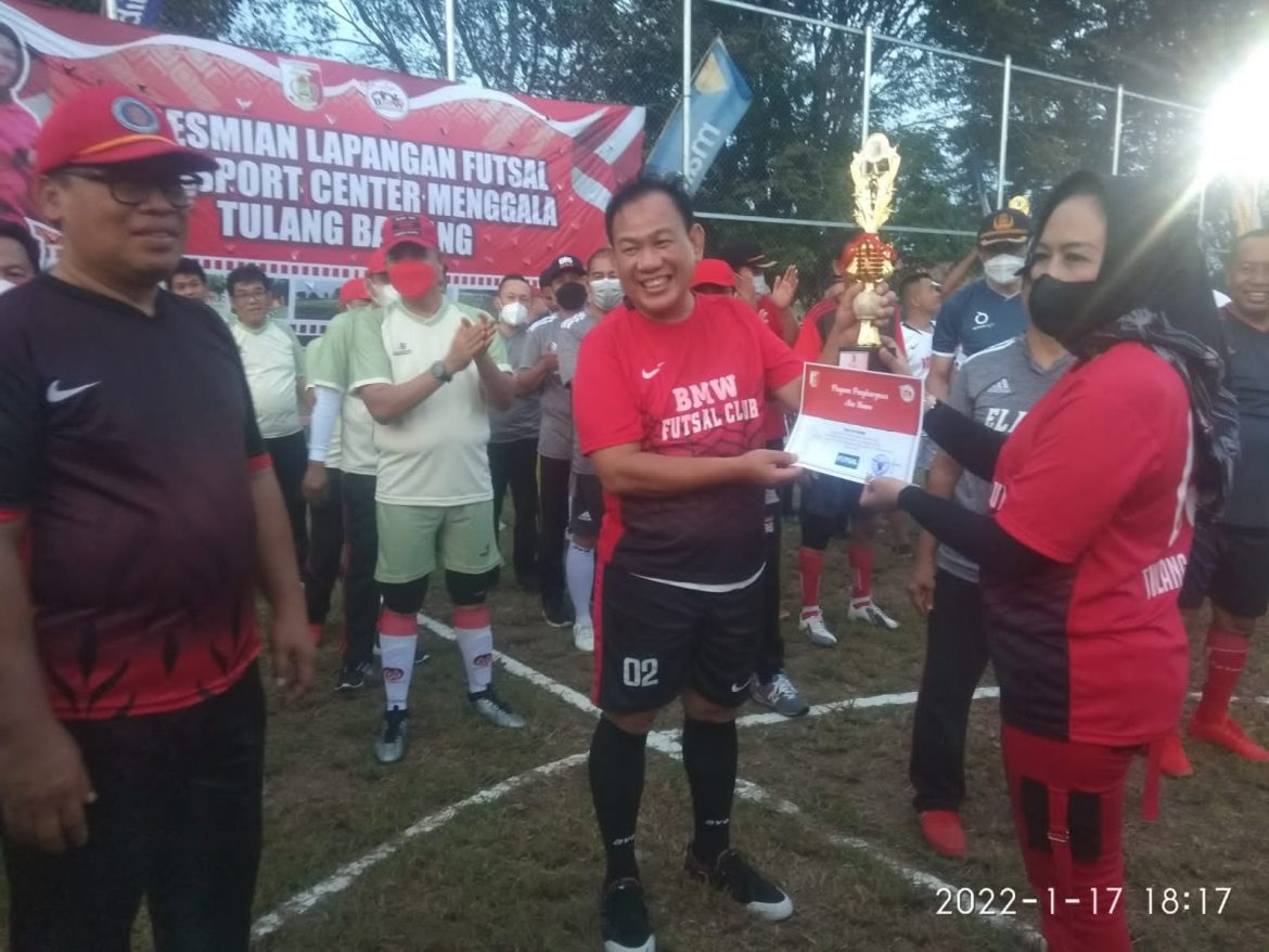 JALURNEWS.COM, Tulang Bawang-Momentum peresmian Lapangan Futsal yang bertempat di BMW Sport center Menggala dilengkapi dengan Grand Final Futsal antar Kepala OPD Kabupaten Tulang Bawang. Dalam perhelatan ini, Tim futsal Garuda FC yang di gawangi oleh Sekda keluar sebagai juara dan beliau dinobatkan sebagai Top Scorer (Pencetak gol terbanyak) dengan jumlah 9 goll, kegiatan ini dilaksanakan pada hari Senin, (17/01/2022).