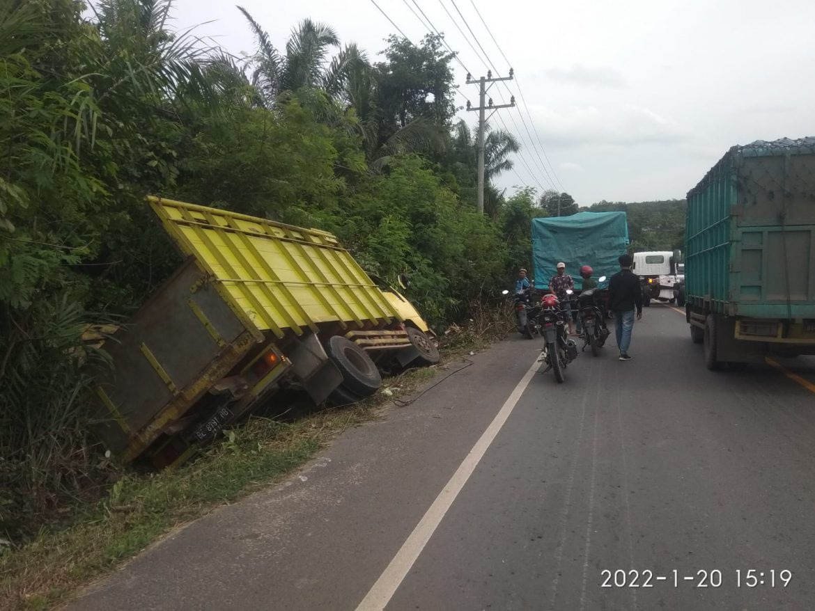 JALURNEWS.COM, Tulang Bawang – Sebuah mobil truck berwarna kuning dengan plat nomor polisi BE 8791 PB terperosok ke dalam Siring di kawasan Kahuripan Jaya, Kecamatan Banjar Baru, Tulang Bawang, Kamis (20/01/2022). sekitar pukul 15.00 WIB.