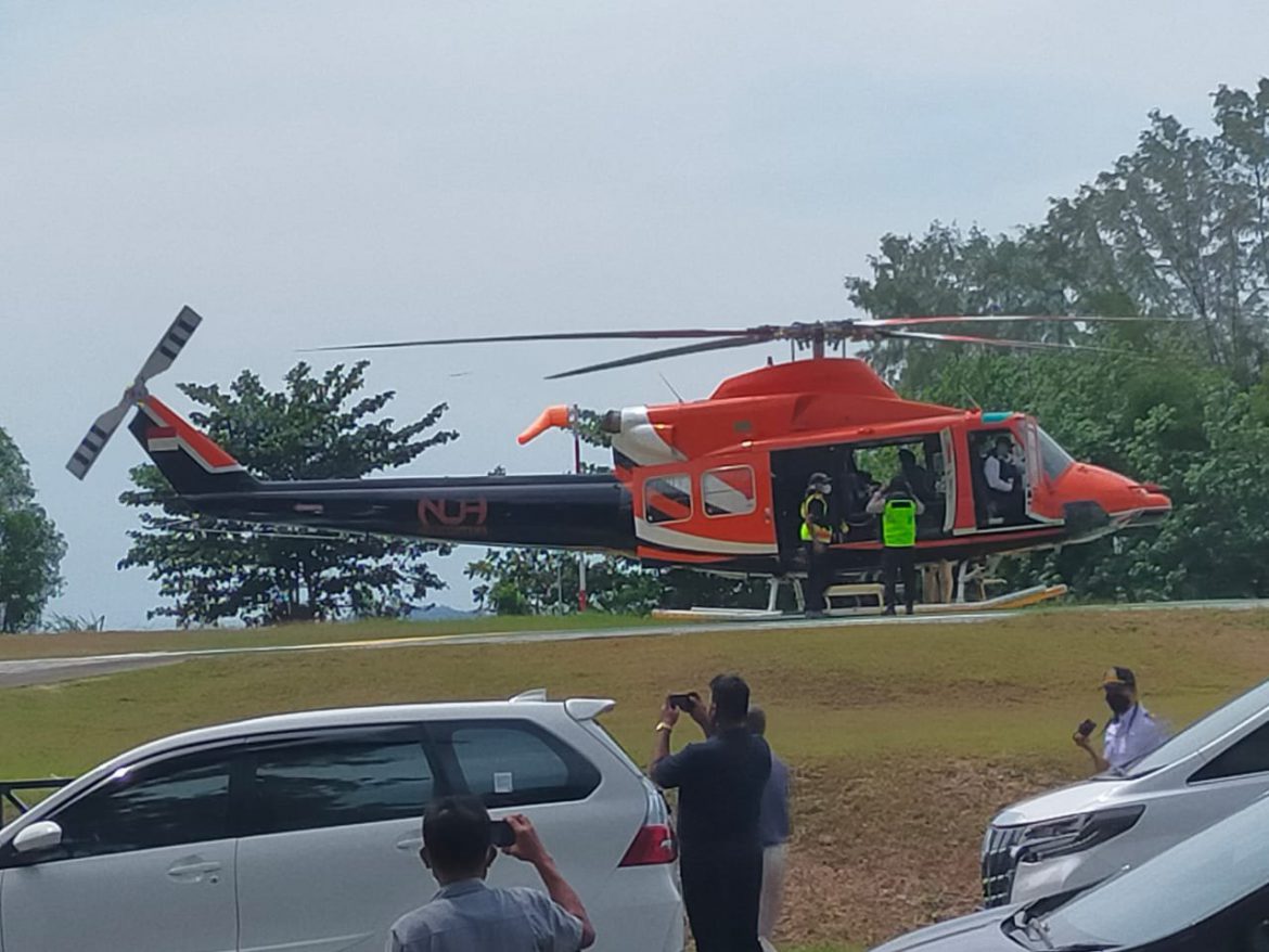 Sebelum Helykopter yang di tumpangi Menhub Budi Karya mendarat di landasan kawasan Industri Bintan Inti Estate meninjau pembangunan Banda Udara Busung melalui pantauan udara.