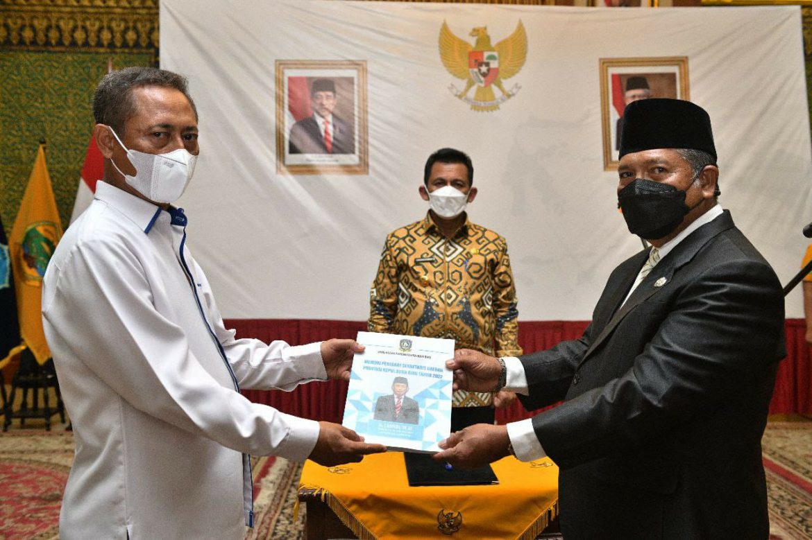 Kepala Bakesbangpol Ir. Lamidi dan Kepala BKD dan Korpri menjadi saksi dalam pengambilan sumpah jabatan dan pelantikan Pj. Sekdaprov tersebut.