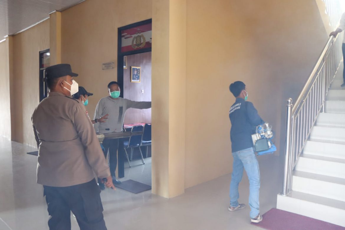 “Pengasapan atau fogging dilakukan disejumlah titik di Mako Polres seperti ruang kerja, halaman Mako Polres, tempat pelayanan public serta saluran air dan tempat adanya genangan air turut disemprot asap fogging”, jelas Sunhot.