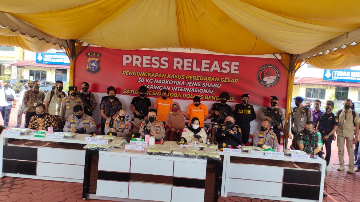 Dari pantauan media ini pres rilis kali ini di pimpin oleh Kapolda Riau Kapolda Riau Irjen Mohammad Iqbal, didampingi Kapolres Bengkalis AKBP Indra Wijatmiko, Dandim 0303/Bengkalis, Letkol INF Endik Yunia H, Beacukai Bengkalis, Bupati Bengkalis Kasmarni, Ketua DPRD Bengkalis, H. Khairul Umam Lc.M.E.SY. dan forkopimda.