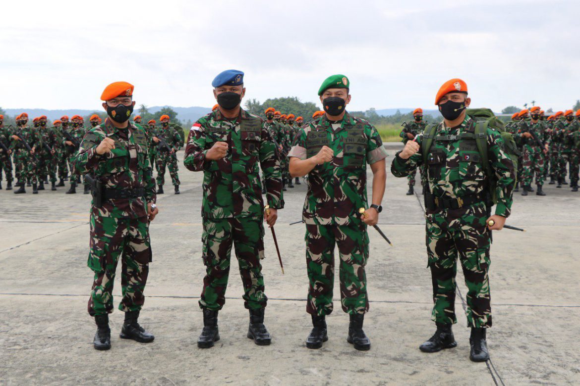 JALURNEWS.COM, Jayapura – Panglima Kodam XVII/ Cenderawasih Mayjen TNI Teguh Muji Angkasa memimpin Upacara Pelepasan Satgas Kopasgat BKO Pangdam XVII/Cend, di Apron Base Ops Lanud Silas Papare, Jayapura, Selasa (15/2).
