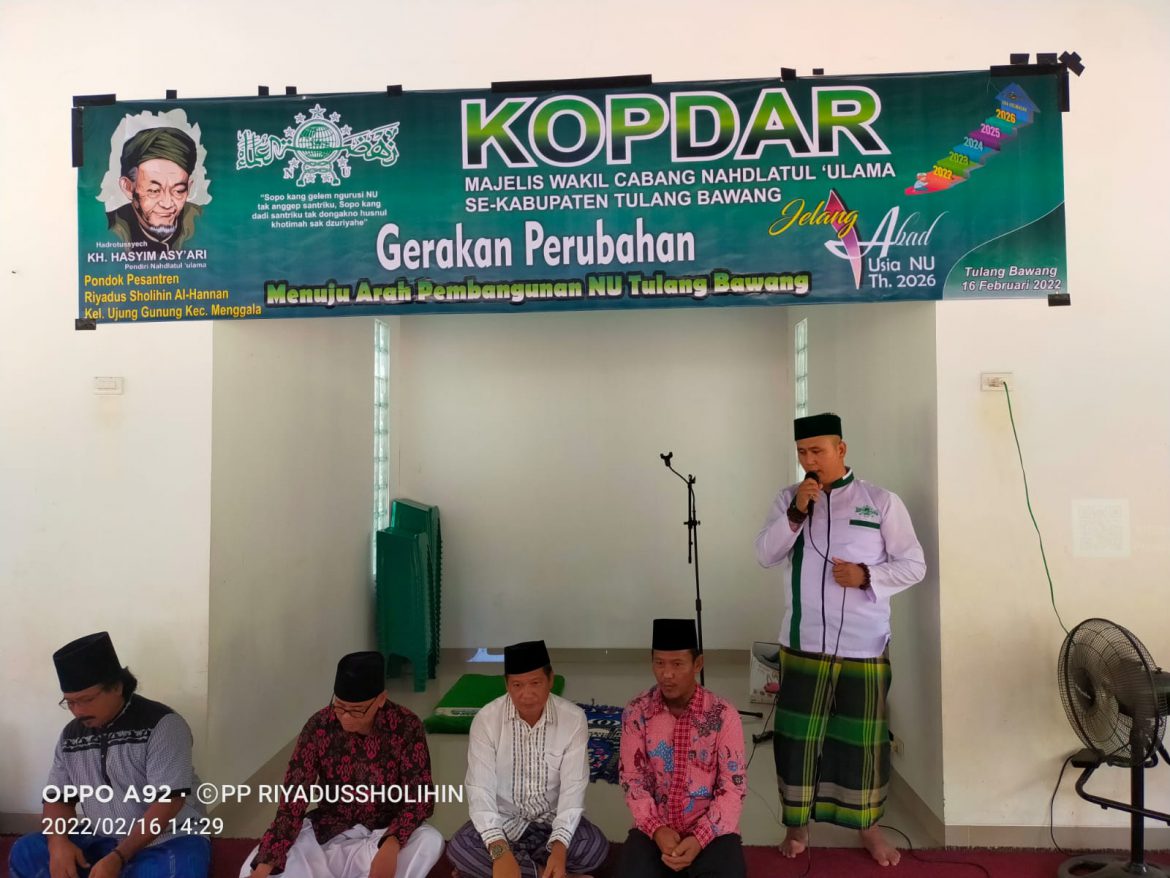 Dalam sambutan nya Ketua MWCNU Kecamatan Menggala Hi. Irpan Toni MH. Mengucapkan terimakasih kepada PCNU kabupaten Tulang Bawang atas kehormatan yang diberikan yaitu perdana melaksanakan KOPDAR yg dihadiri seluruh MWC NU, lembaga dan Banom NU Se- Kabupaten Tulang Bawang yang dipercayakan kepada kami untuk dilaksanakan di Menggala.