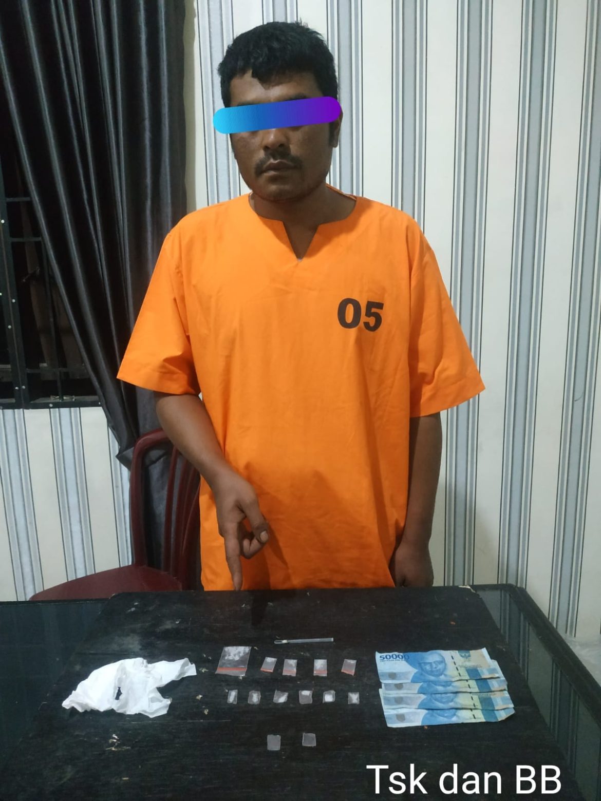 Adapun barang bukti yang turut diamankan dari SS adalah 2 (dua) lembar plastik bening dalam keadaan kosong, 1 (satu) buah pipet plastik ujungnya runcing sebagai skop, Potongan kertas tisu warna putih dan Uang Tunai Sebesar Rp. 200.000,- milik SS yang diduga adalah uang hasil penjualan shabu shabu.