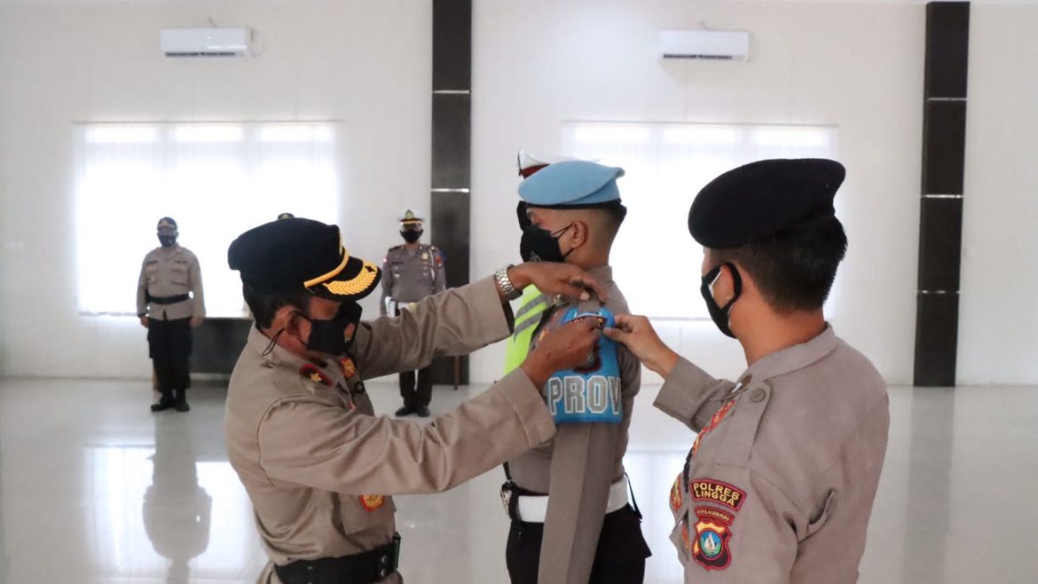 Dalam Kegiatan Apel gelar Pasukan tersebut Kompol Karyono menyematkan pita kepada Perwakilan Personil yang ditunjuk Sebagai tanda dimulainya Pelaksanaan Operasi Keselamatan Seligi 2022.