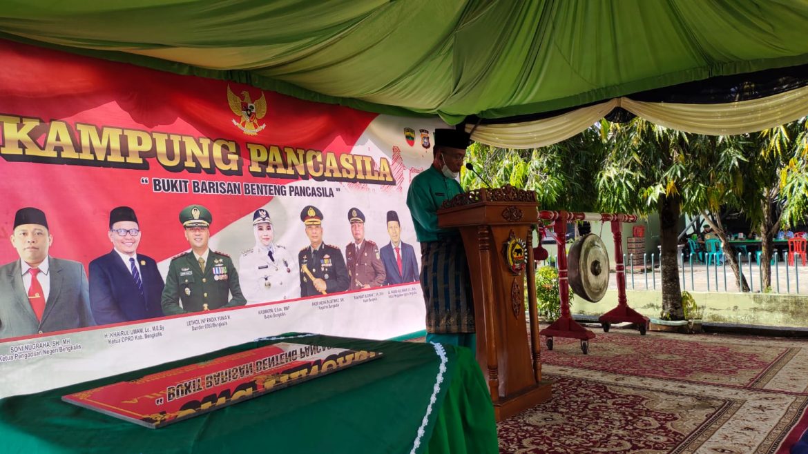 Sementara itu, Komandan Kodim 0303/Bengkalis Letkol Inf Endik Yunia H dalam sambutannya menyampaikan, bahwa latar belakang dibentuknya kampung panca sila adalah, menegakkan nilai-nilai Pancasila sebagai pedoman rakyat Indonesia dalam berbangsa dan bernegara.