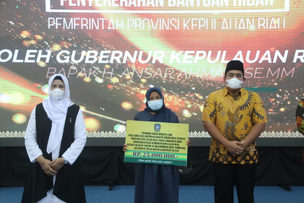 Hibah yang diserahkan langsung oleh Gubernur Kepri Ansar Ahmad itu langsung diterima oleh perwakilan para penerima hibah, Jum’at (11/03) di Aula Kantor Bupati Bintan. Terlihat Ketua TP PKK Kepri Dewi Kumalasari Ansar juga turut hadir mendampingi.