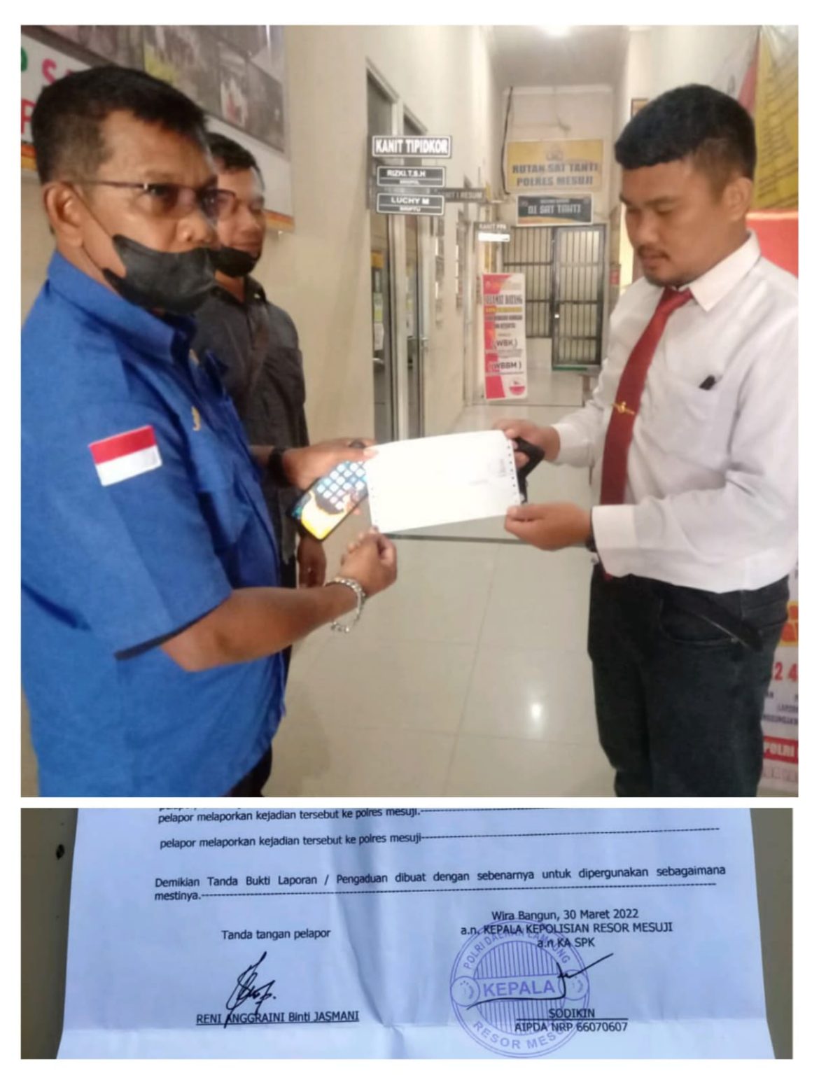 Atas tindakan AI, akhirnya Reni dengan di dampingi orang tuanya langsung melaporkan apa yang dialaminya ke Mapolres Mesuji, dan laporan nya di terima langsung oleh KSPKT Polres Mesuji AIPDA Sodikin dengan tanda bukti lapor Nomor : TBL/130/III/2022/ Polda Lampung/RES MESUJI/SPK T.
