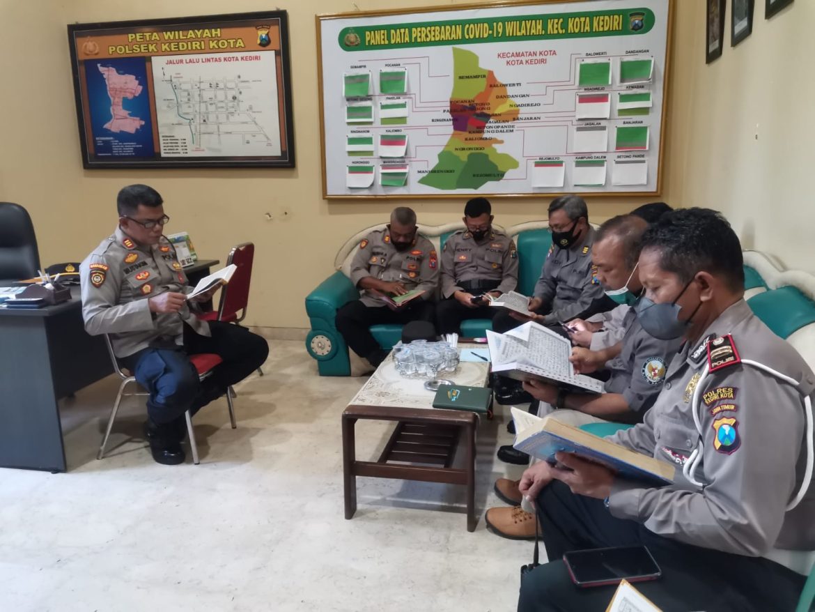 JALURNEWS.COM, KEDIRI- Polres Kediri Kota, Mengisi kegiatan selama Bulan Suci Ramadhan Anggota Polres Kediri Kota dan Polsek jajaran terus melakukan upaya peningkatan keimananan dengan melaksanakan Khotim Quran dengan program Ruang kerja Berkhatam