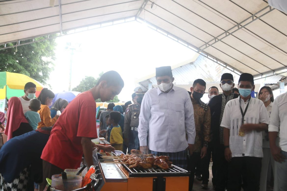 Plt Bupati Bintan Roby Kurniawan saat melihat secara langsung keadaan Bazar Ramadhan Tanjung Uban, Senin sore (18/04) cukup berbangga saat menemui produk UMKM yang terpajang rapi di berbagai stand yang ada. Mulai dari olahan kering hingga makanan siap saji, semua menu tersebut tak luput dari perhatian orang nomor satu di Bintan itu.