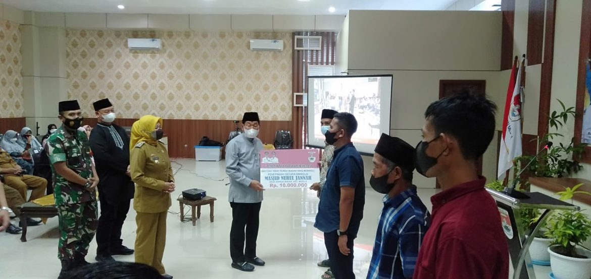 Pada kesempatan itu pula, telah dilaksanakan penyerahan kartu JKN KIS, bantuan kepada rumah ibadah dan bantuan perlengkapan ibadah.
