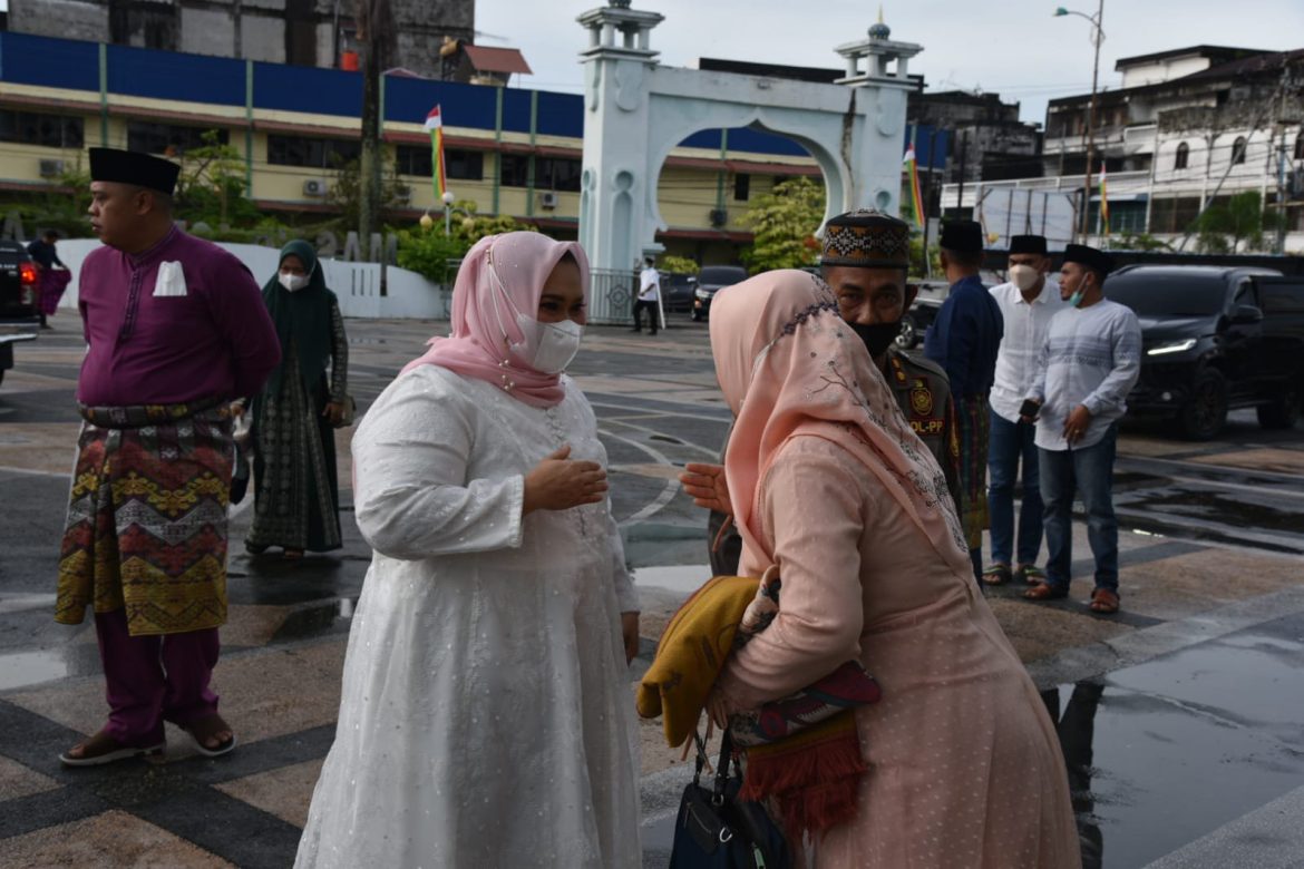JALURNEWS.COM, Bengkalis – Bupati Bengkalis Kasmarni dan Wakil Bupati Bengkalis H.Bagus Santoso beserta keluarga laksanakan shalat Idul Fitri 1443 H/2022 M di Masjid Agung Istiqomah Bengkalis, Senin pagi, 2 Mei 2022.