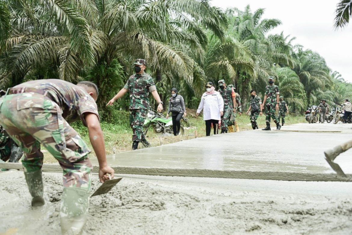 JALURNEWS.COM, BENGKALIS – Danrem 031/Wirabima Brigjen TNI Parlindungan Hutagalung bersama Bupati Bengkalis Kasmarni serta Forkopimda Kabupaten Bengkalis langsung meninjau kelokasi semenisasi Jalan Jaya Makmur tembus ke Jalan Sekolah Dusun III Air Hitam usai peresmian kegiatan TMMD ke 113 di gedung serbaguna Desa Muara Basung.
