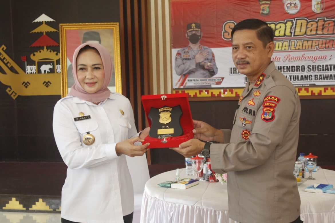 JALURNEWS.COM,Tulang Bawang-Kapolda Lampung Irjen Polisi Hendro Sugiatno laksanakan lawatannya ke kabupaten Tulang Bawang dan disambut dengan baik oleh bupati Tulangbawang Dr Hj Winarti SE MH di pendopo rumah dinas bupati Tulangbawang Kamis, (11/5).