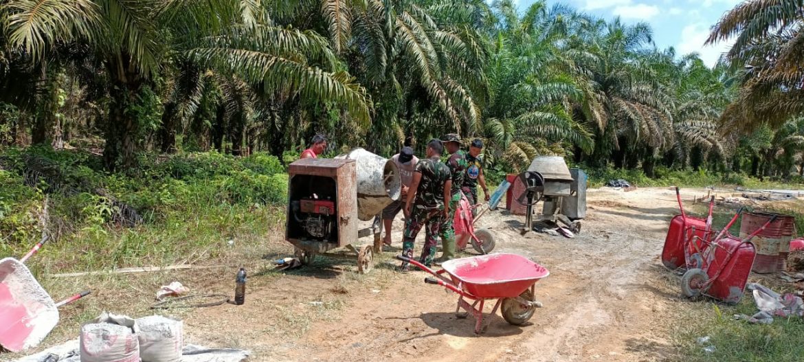 JALURNEWS.COM, BENGKALIS — Satuan Tugas (Satgas) TNI Manunggal Membangun Desa (TMMD) ke-113, cepat tanggap ketika mesin molen untuk pekerjaan semenisasi jalan di lokasi sasaran 2 mengalami kerusakan pada Sabtu, 14 Mei 2022.