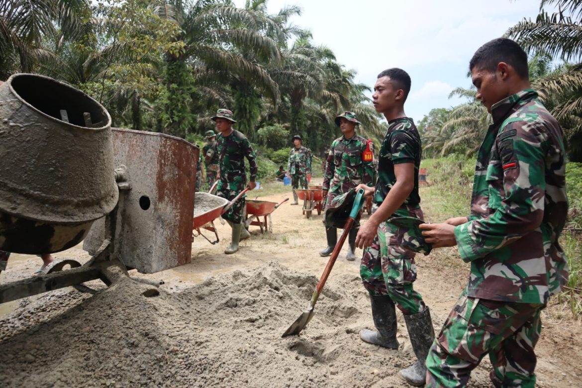 JALURNEWS.COM, BENGKALIS — Pekerjaan semenisasi di lokasi sasaran 2 TNI Manunggal Membangun Desa (TMMD) ke-113 Kodim 0303/Bengkalis sudah mencapai 25 persen.