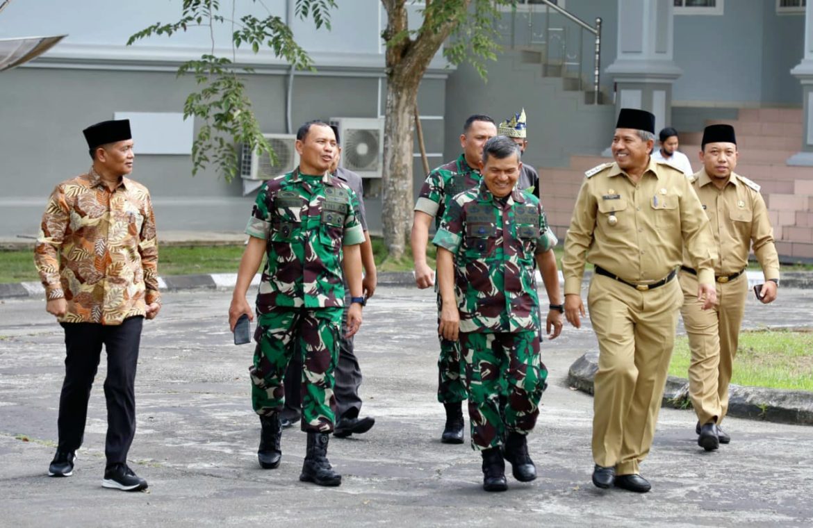 Bupati Siak Alfedri mengucapkan selamat datang kepada Panglima Kodam (Pangdam) I/Bukit Barisan Mayjen TNI Ahmad Daniel Chardin beserta anggota di Kabupaten Siak Kota Istana.