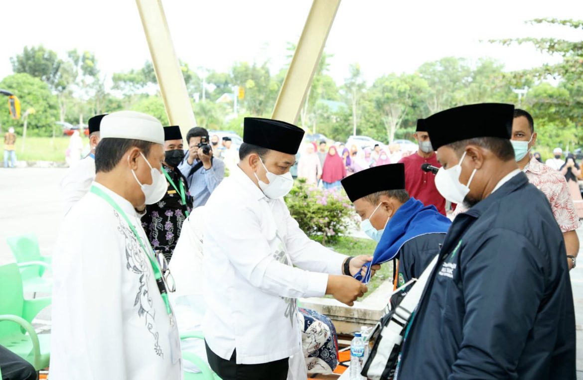 Sementara Asisten I Fauzi Azni, sebagai ketua panitia, memberikan laporan kegiatan pelepasan 107 JCH, 52 laki laki dan 55 perempuan. JCH terdiri dari dua rombongan dan sembilan regu. JCH termuda 36 tahun, dan tertua 65 tahun. “Seluruh JCH sehat dan telah dilakukan PCR hasilnya negatif dari Covid-19,” ungkap Fauzi Asni.