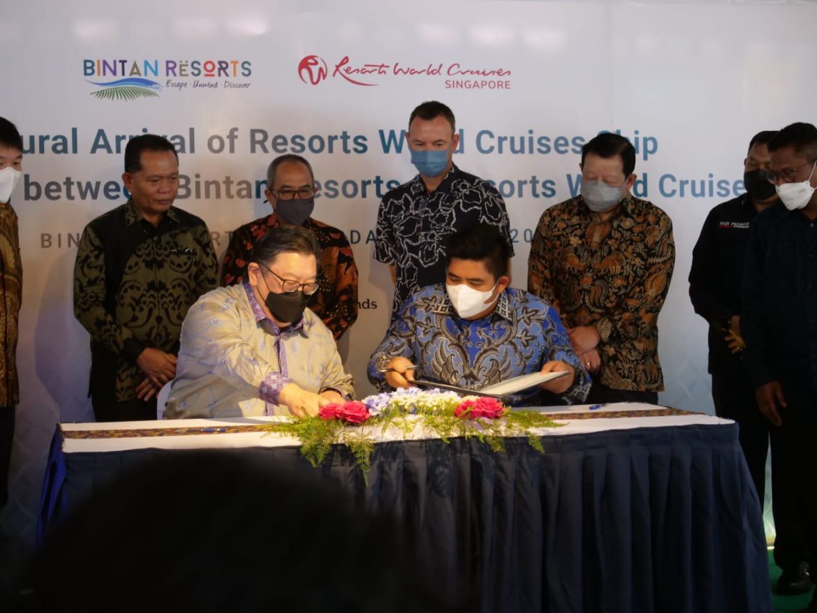 JALURNEWS.COM, Bintan – Usai Pandemi Covid 19, sektor wisata di Kabupaten Bintan, Provinsi Kepulauan Riau, terlihat mulai bergeliat sebagai salah satu daerah tujuan wisata yang cukup diandalkan guna menarik kunjungan wisatawan mancanegara di Indonesia. Apalagi per 2 Juli 2022 ini, kapal pesiar di bawah naungan management Resorts World Cruises akan mulai berkunjung memasuki perairan Kabupaten Bintan, Kepulauan Riau. Hal tersebut ditandai dengan Penyambutan Kedatangan Kapal Pesiar Perdana serta Penandatanganan MoU antara Management Bintan Resorts Cakrawala dan Resorts World Cruises di Doulus Phos the Ship hotel, Lagoi, Bintan Kepulauan Riau, Sabtu (2/7) pagi.