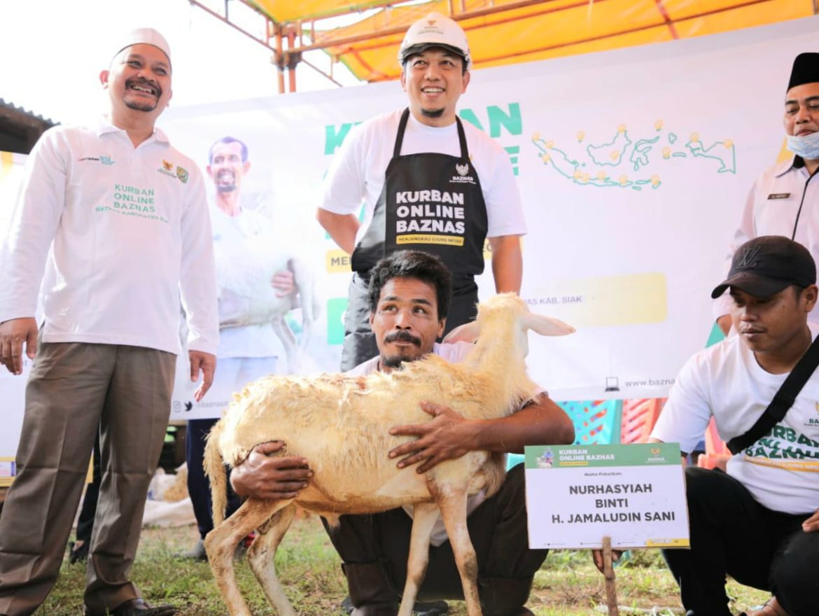 “Apresiasi tertinggi kami berikan kepada Baznas Kabupaten Siak atas pelaksanaan program kurban online yang dilaksanakan di Balai Ternak Mulia Harapan Farm Kampung Dayun, nantinya daging ini akan disalurkan ke masyarakat kurnag mampu dan pondok pesantren dan narapidana yang ada di Kabupaten Siak”